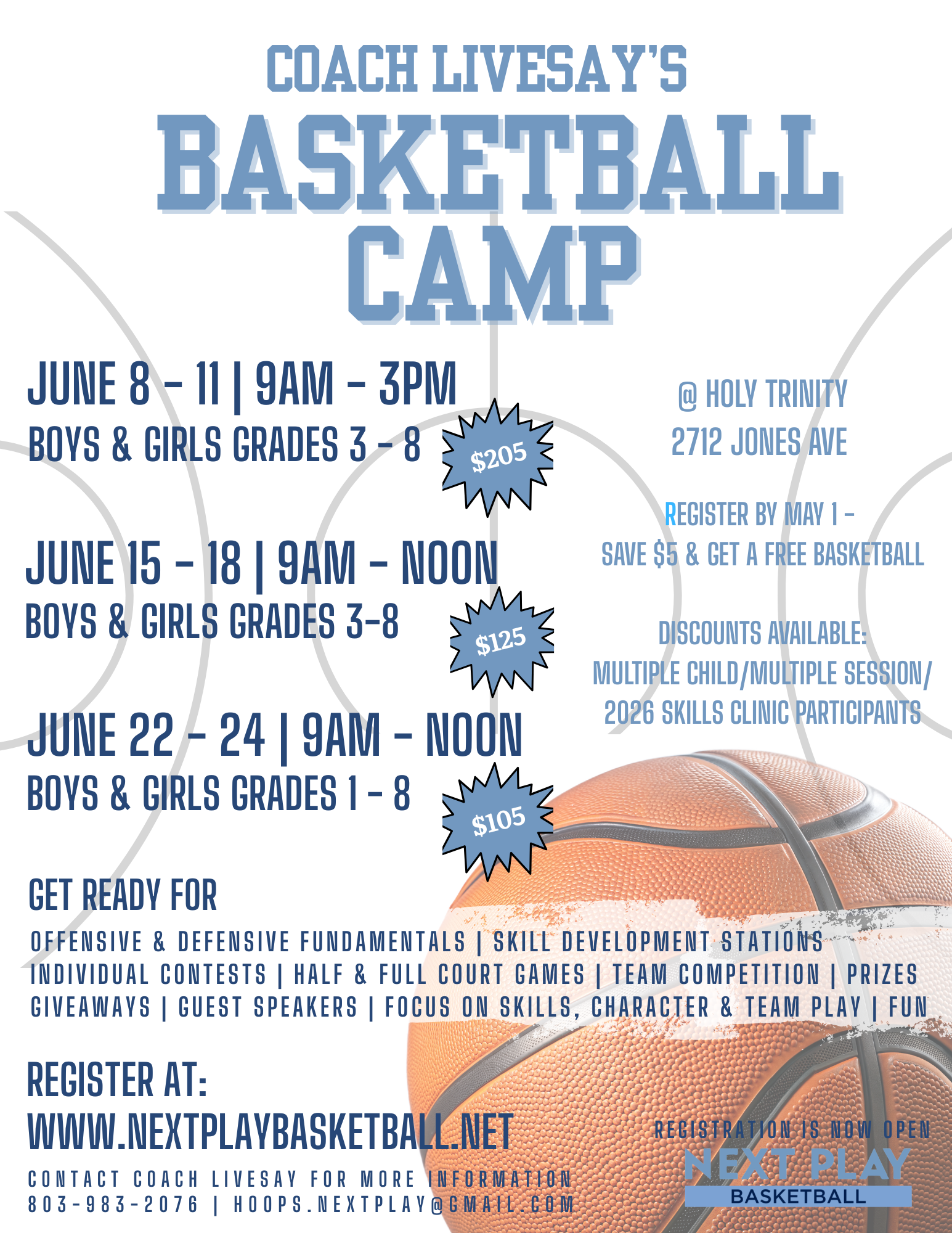 ****Early Registration Bonus**** Register AND Pay by May 1 - Save $5 and get a free basketball